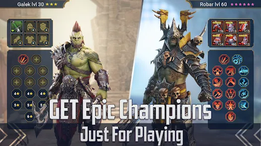 Epic clashes await in online modes like the multiplayer Arena, where you can put your team of Champions against others in strategic RPG battles. Experiment with over 1+ million possible Champion builds, craft the ultimate team and their battle tactics, and be the best!
